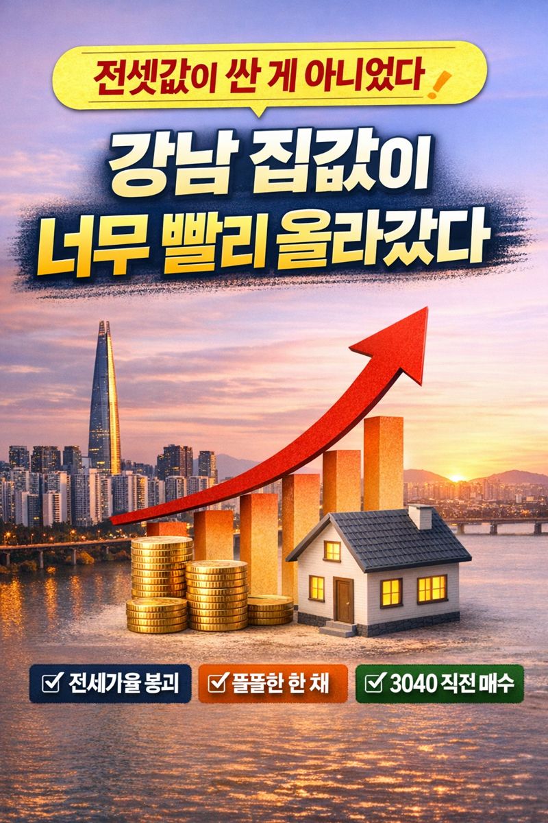 최근 서울 핵심지에서 이 비율이 크게 낮아졌다는 건, 전셋값이 내려갔다기보다 매매가가 전세를 훨씬 앞질렀다는 쪽에 더 가깝습니다. 전세는 오르는데 매매는 더 크게 오르니, 두 가격의 ‘거리’가 비정상적으로 벌어지는 그림이 됩니다.
