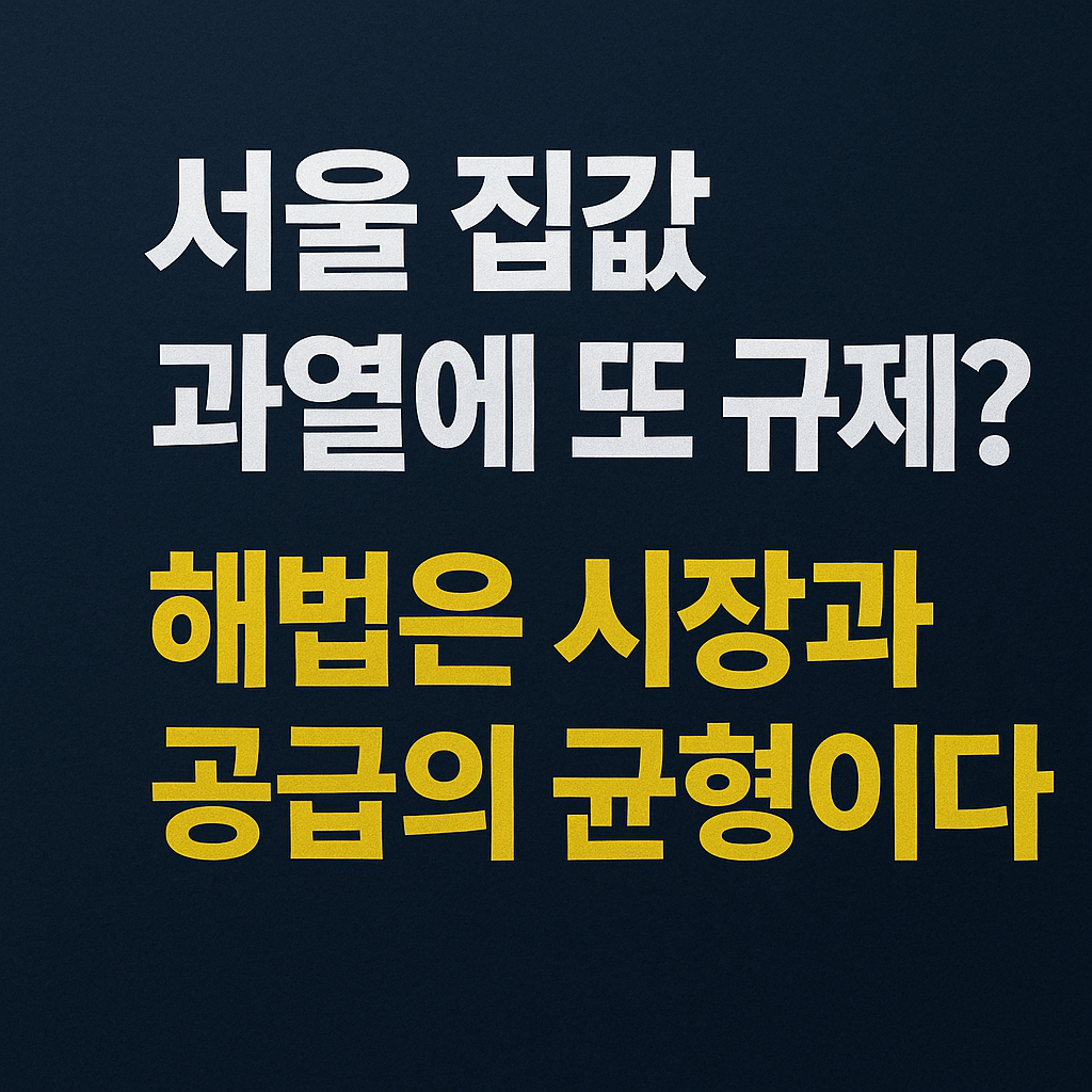 서울 집값이 다시 뜨겁게 달아오르고 있습니다. 일부 지역은 연초 대비 수천만 원 이상 가격이 오르며 신고가를 경신하는 아파트도 나타났습니다. 새 정부가 출범한 지 얼마 지나지 않았지만, 부동산 시장은 벌써부터 규제 가능성에 촉각을 곤두세우고 있습니다. 정부 역시 “가용 가능한 정책 수단을 총망라하겠다”며 규제 지역 확대와 대출 규제 강화, 신규 택지 공급 등 다방면의 정책 카드를 만지작거리고 있는 상황입니다. 그러나 근본적인 해법은 규제가 아니라 공급 확대와 시장 자율에 기반한 정책이라는 목소리가 커지고 있습니다. 시장을 불신하고 억누르기보다, 수요자 판단과 공급 유연성을 존중하는 전략이 장기적으로 실효성을 가질 수 있습니다.