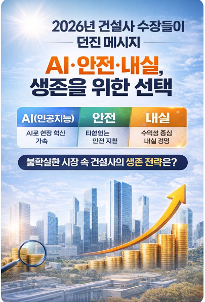 2026년, 건설업의 키워드는 분명하다. AI, 안전, 그리고 내실. 이 세 가지를 얼마나 현실로 구현하느냐가 각 기업의 성패를 가르게 될 것이다.